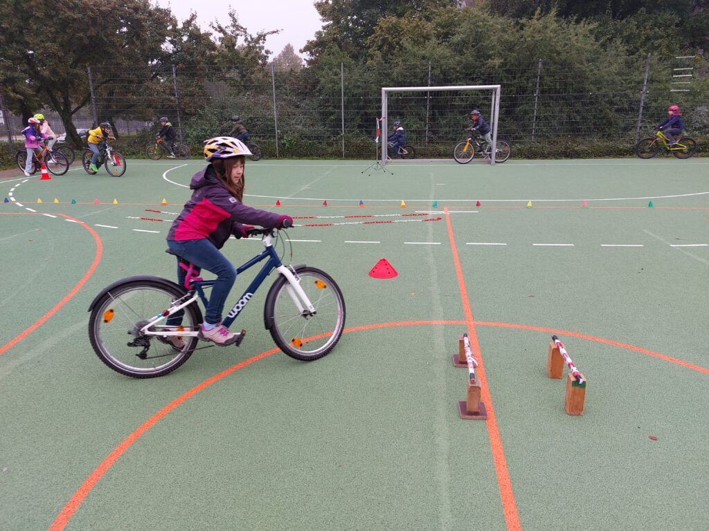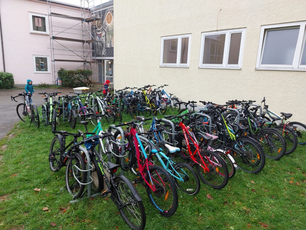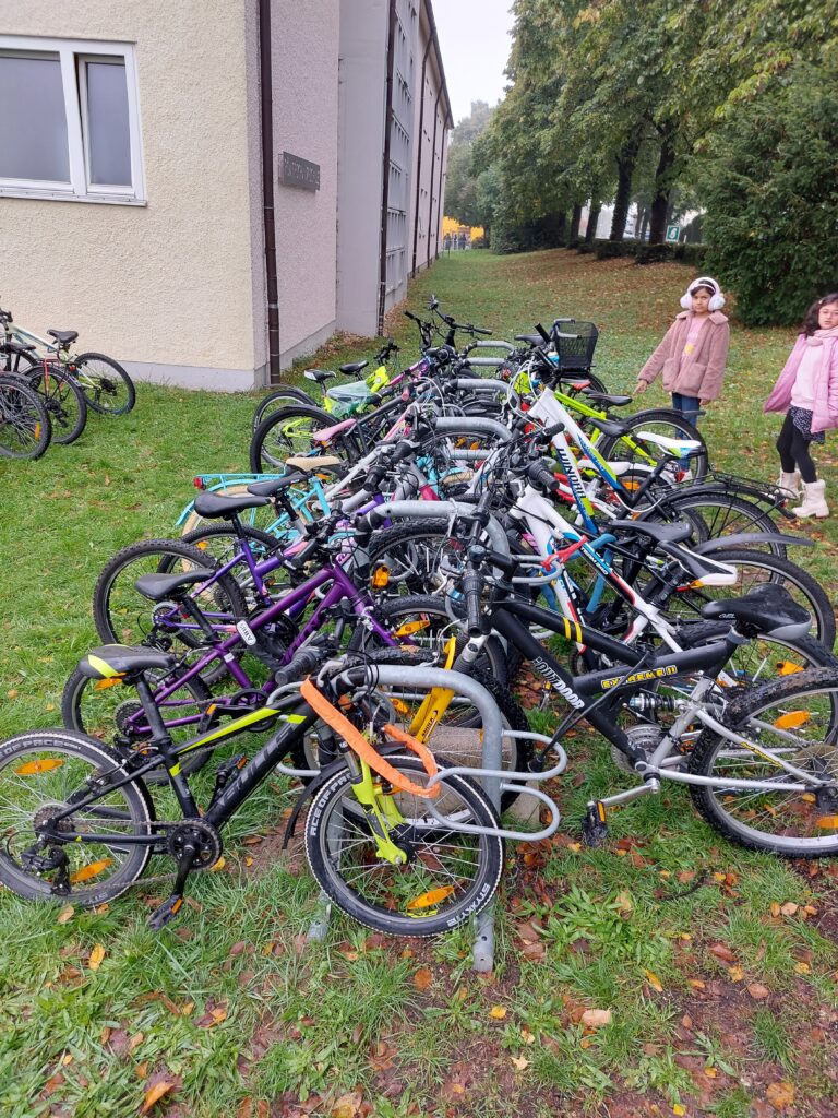 Am 26.09. fand an der Römerschanzgrundschule der diesjährige Fahrradaktionstag für die Klassen 3 und 4 statt. rotz widrigem Wetter schwangen sich die Dritt- und Viertklässler in den Sattel und bewältigten mit Fahrrädern verschiedene Stationen. Mit großer Begeisterung brachten die Kinder ihre eigenen Fahrräder und Helme mit, um auf dem Sportplatz einen abwechslungsreichen Geschicklichkeitsparcours zu meistern. Dabei waren Gleichgewicht, Konzentration und Mut gefragt – und natürlich ganz viel Spaß. T