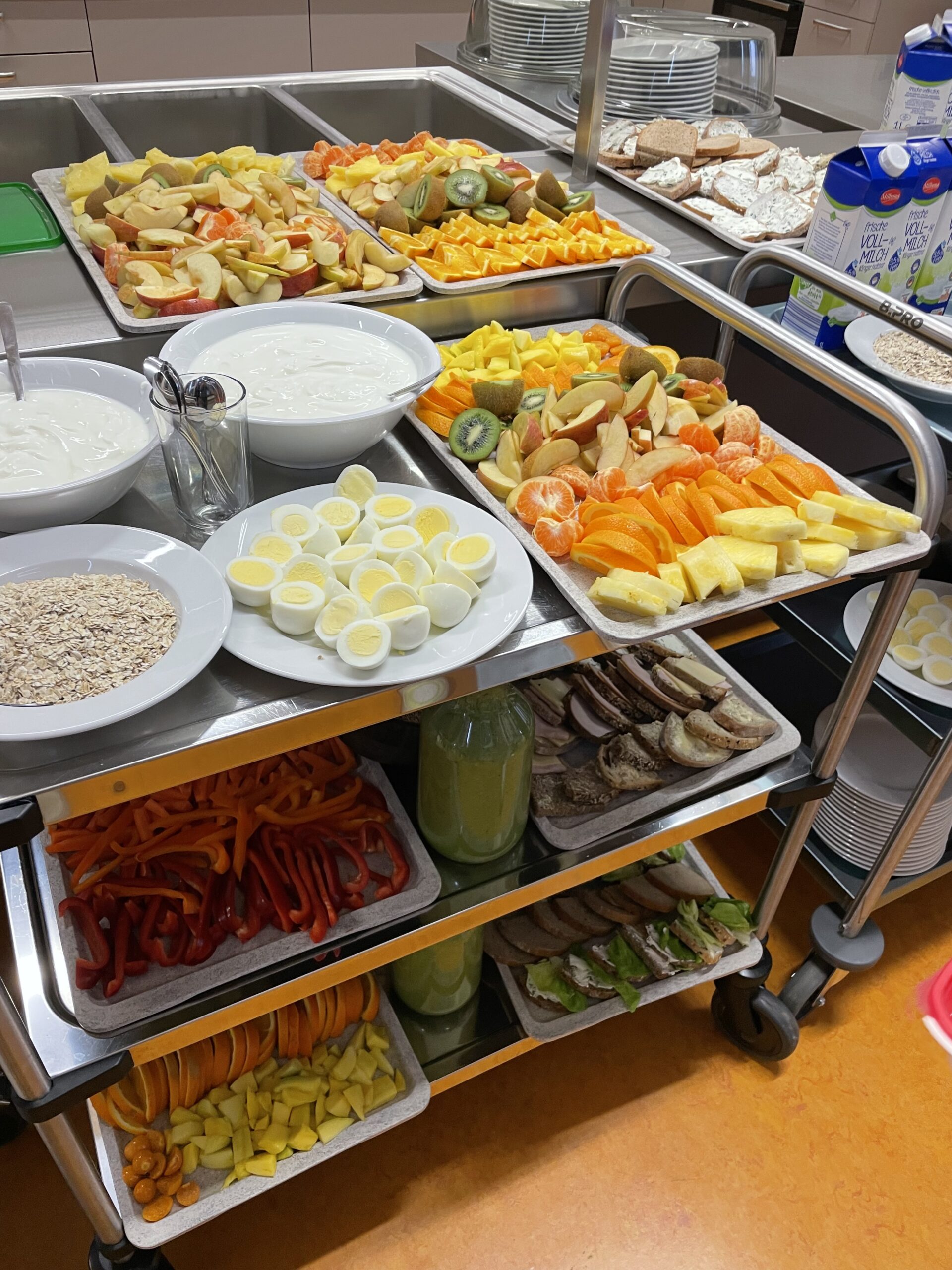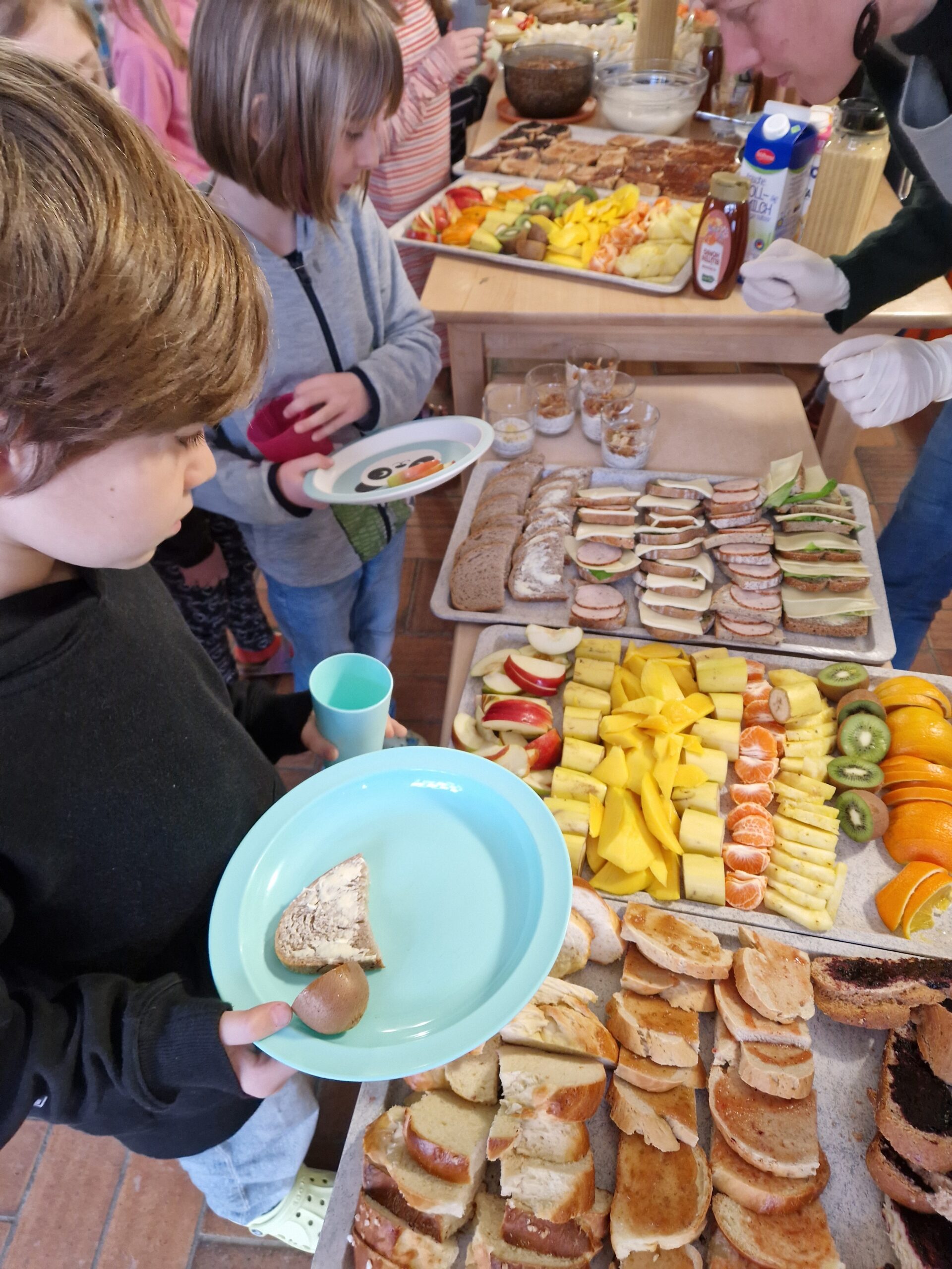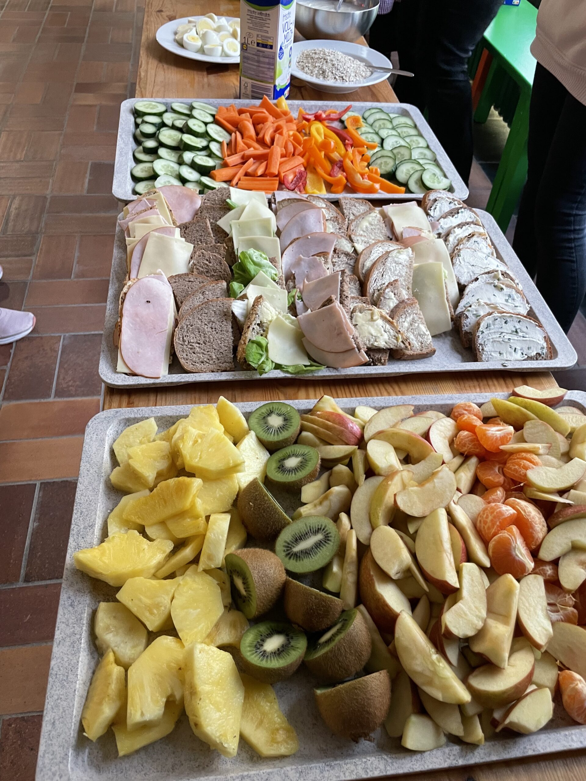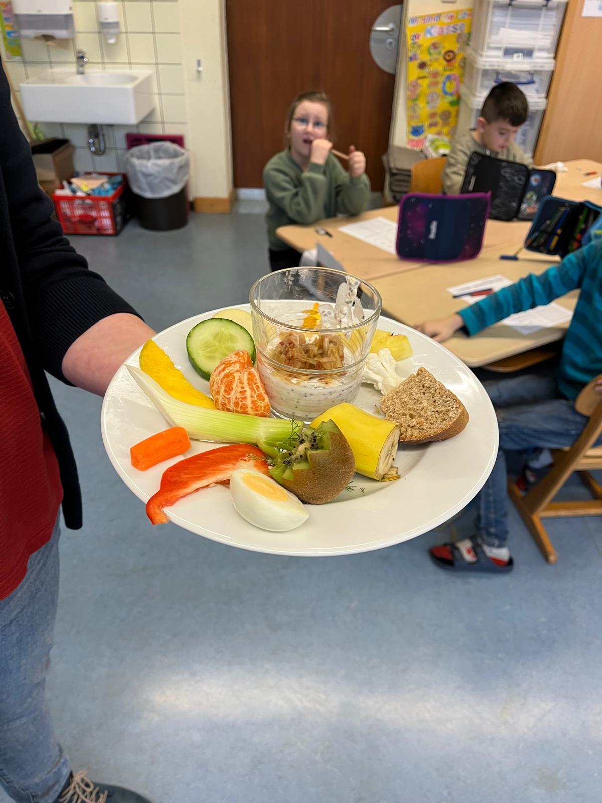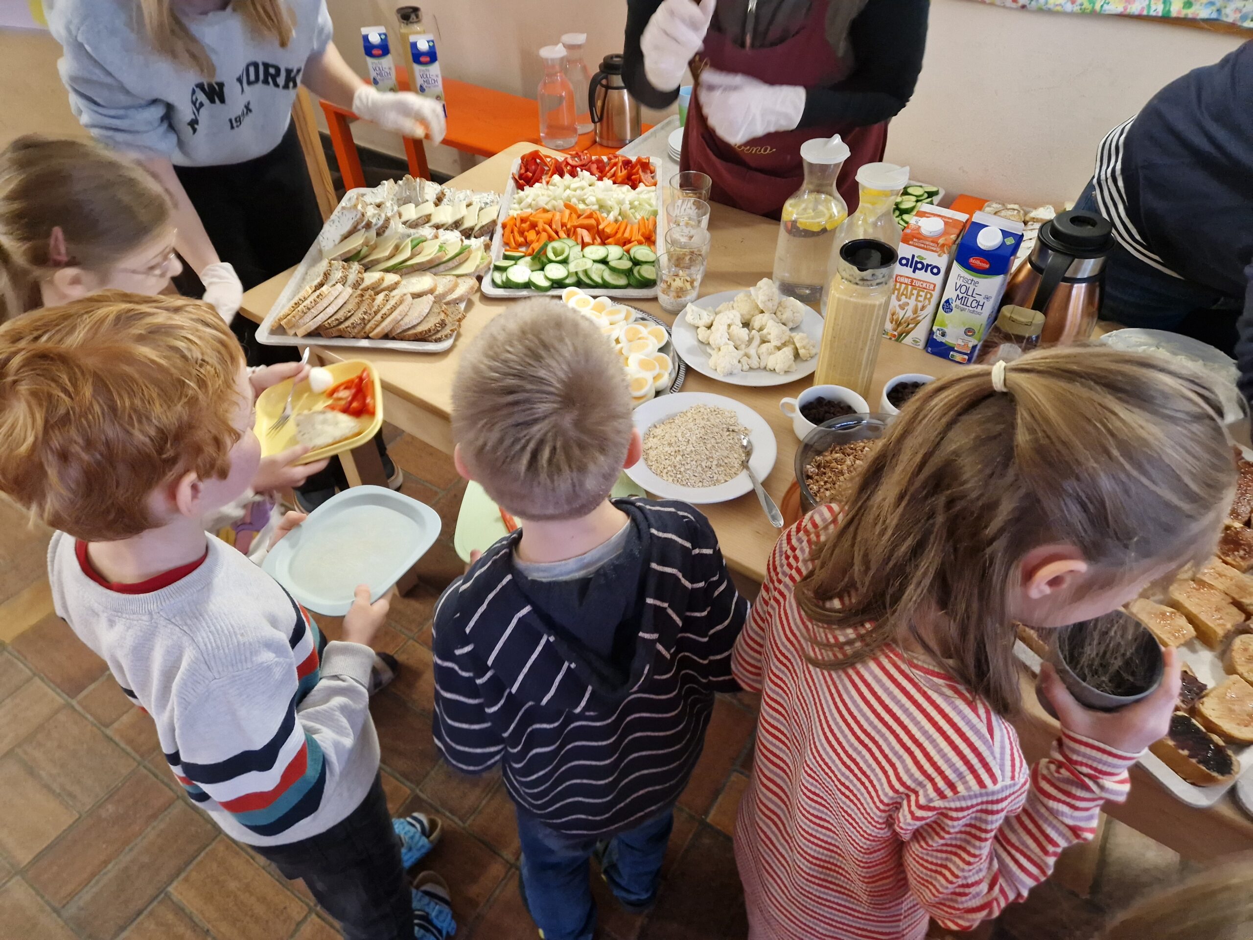 3 Mal im Jahr dürfen die Kinder ihre Brotdosen zu Hause lassen und Teller, Becher und Besteck mitbringen, denn dann gibt es das gesunde Frühstück.