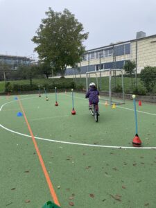 Trotz widrigem Wetter schwangen sich die Dritt- und Viertklässler in den Sattel und bewältigten mit Fahrrädern verschiedene Stationen. Dank vieler engagierter Eltern und LehrerInnen konnten die Kinder so mehr Sicherheit