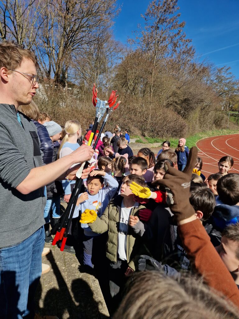 Viele Kinder und Klassen beteiligten sich an der Stadtputzede und gingen ausgerüstet mit Zangen, Handschuhen und Eimern auf die Suche nach Müll. Bei strahlendem Sonnenschein machte das viel Freude und war zugleich für die Natur sehr hilfreich.